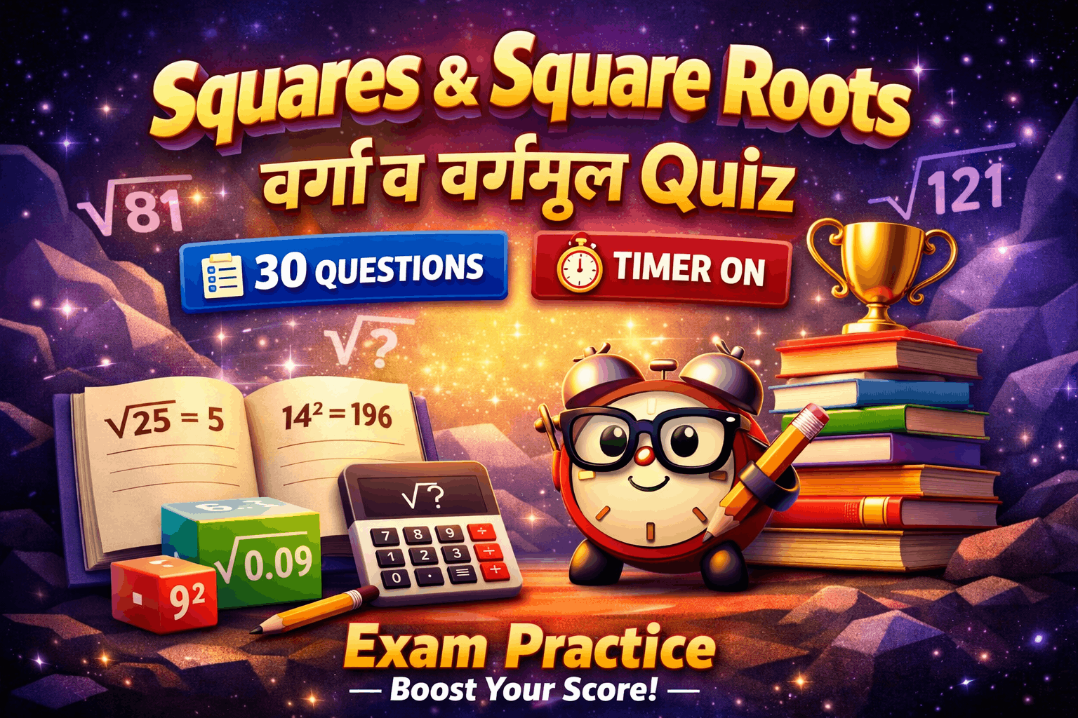 वर्ग व वर्गमूल Mock Test | Squares & Square Roots Quiz (30 Questions)